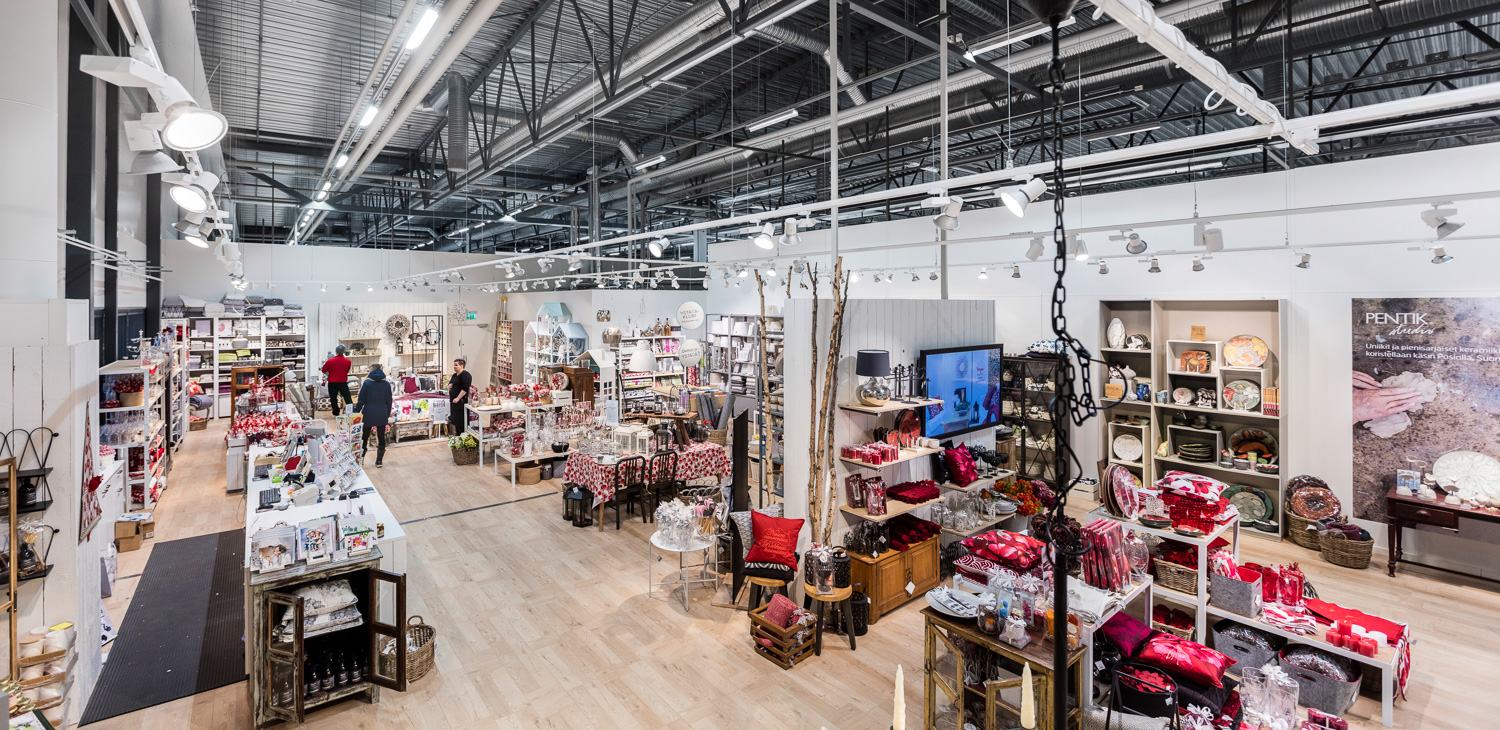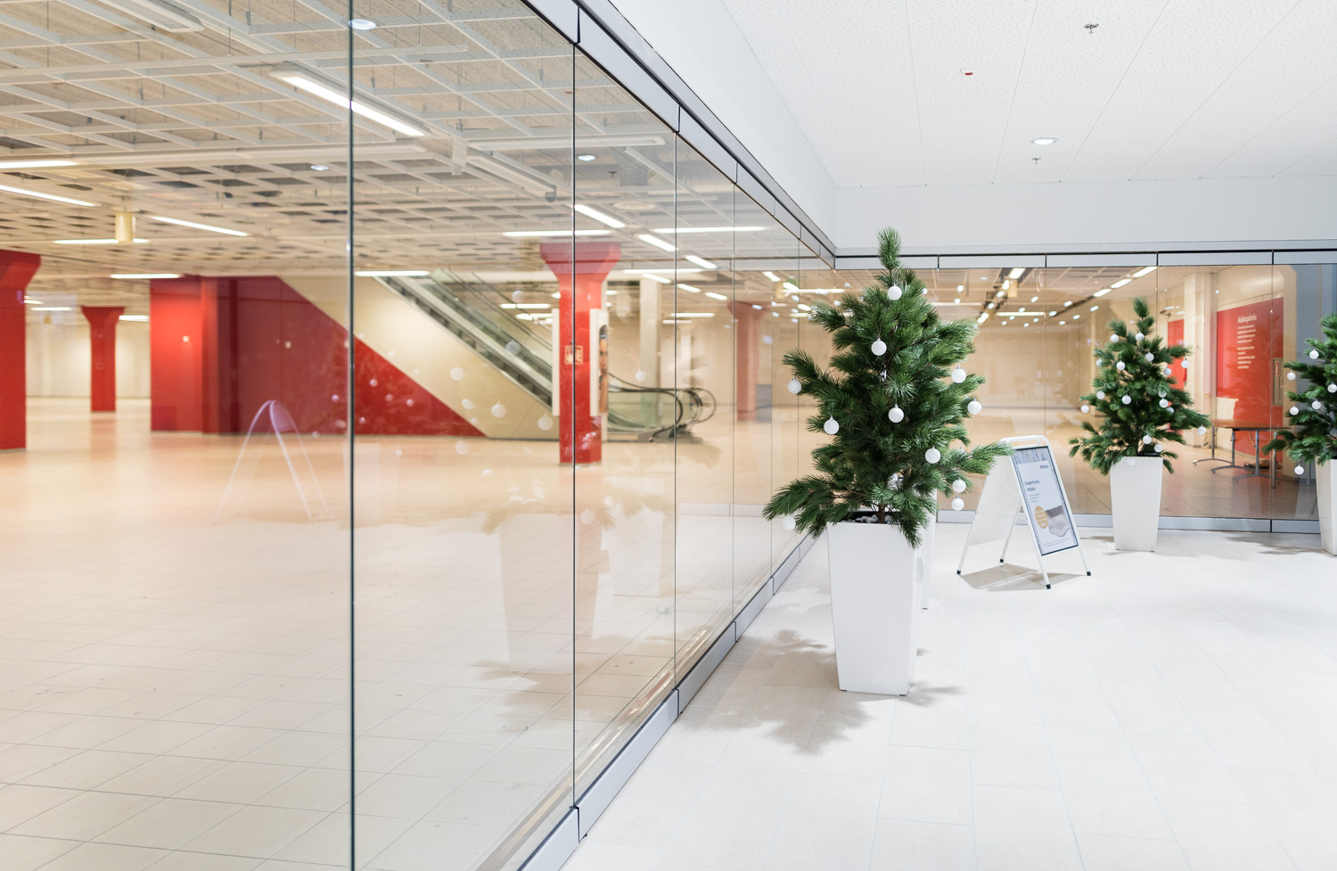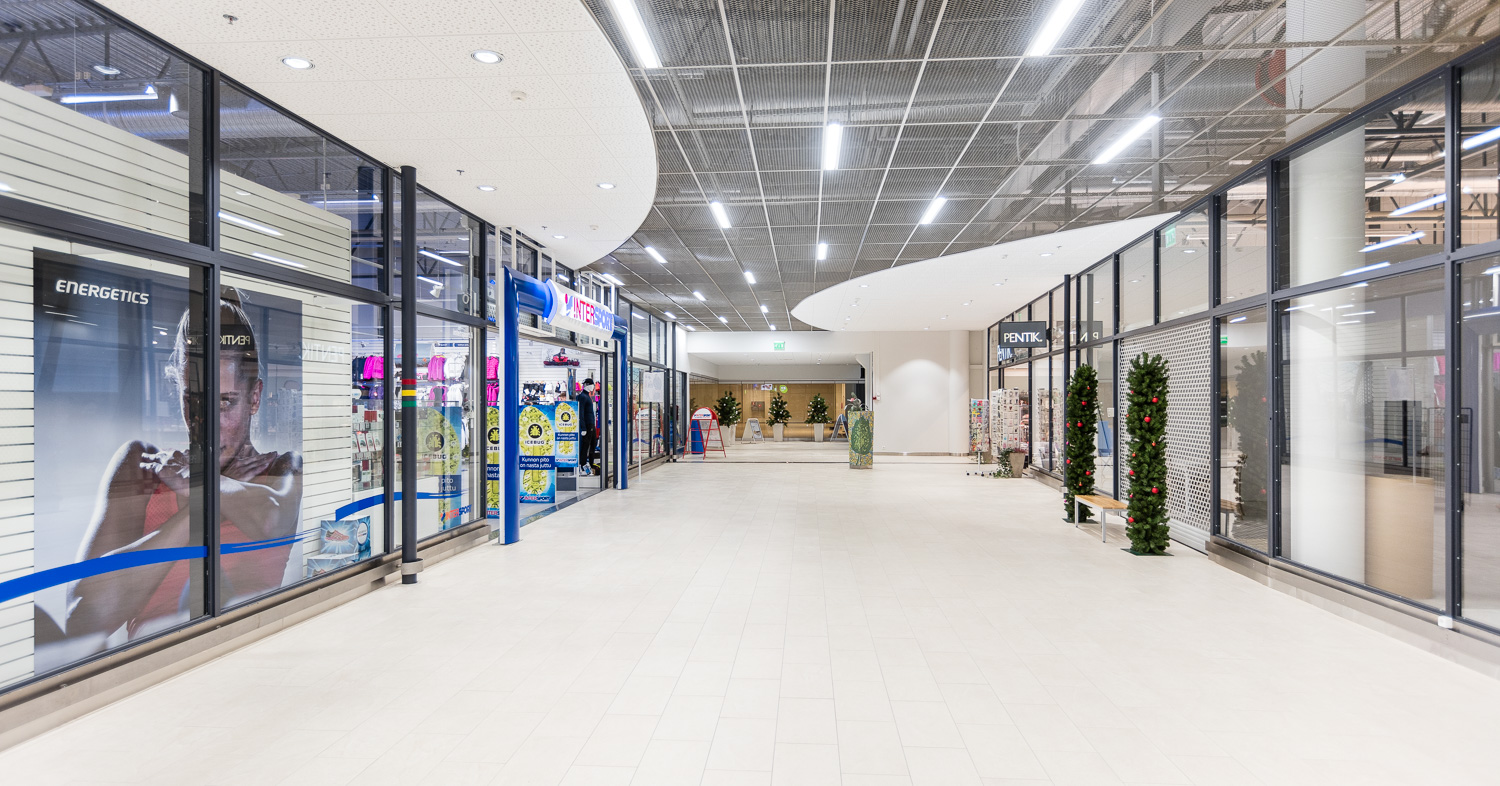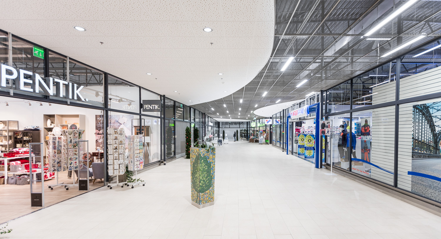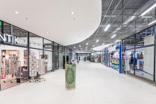 Liikekeskuksen saneeraus 9 500 m². Myymälöiden väliset seinät on toteutettu InLine-elementtiratkaisulla.