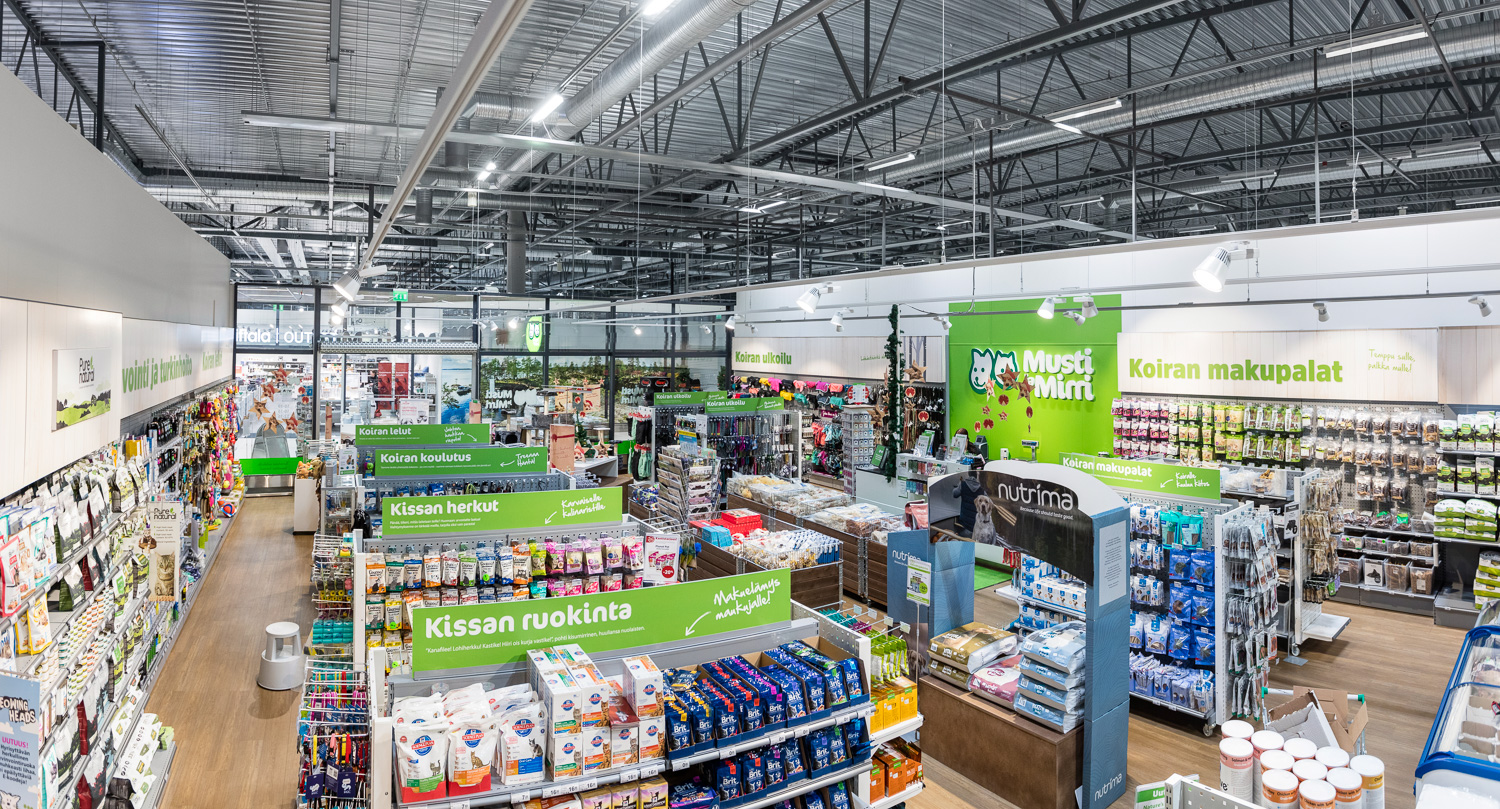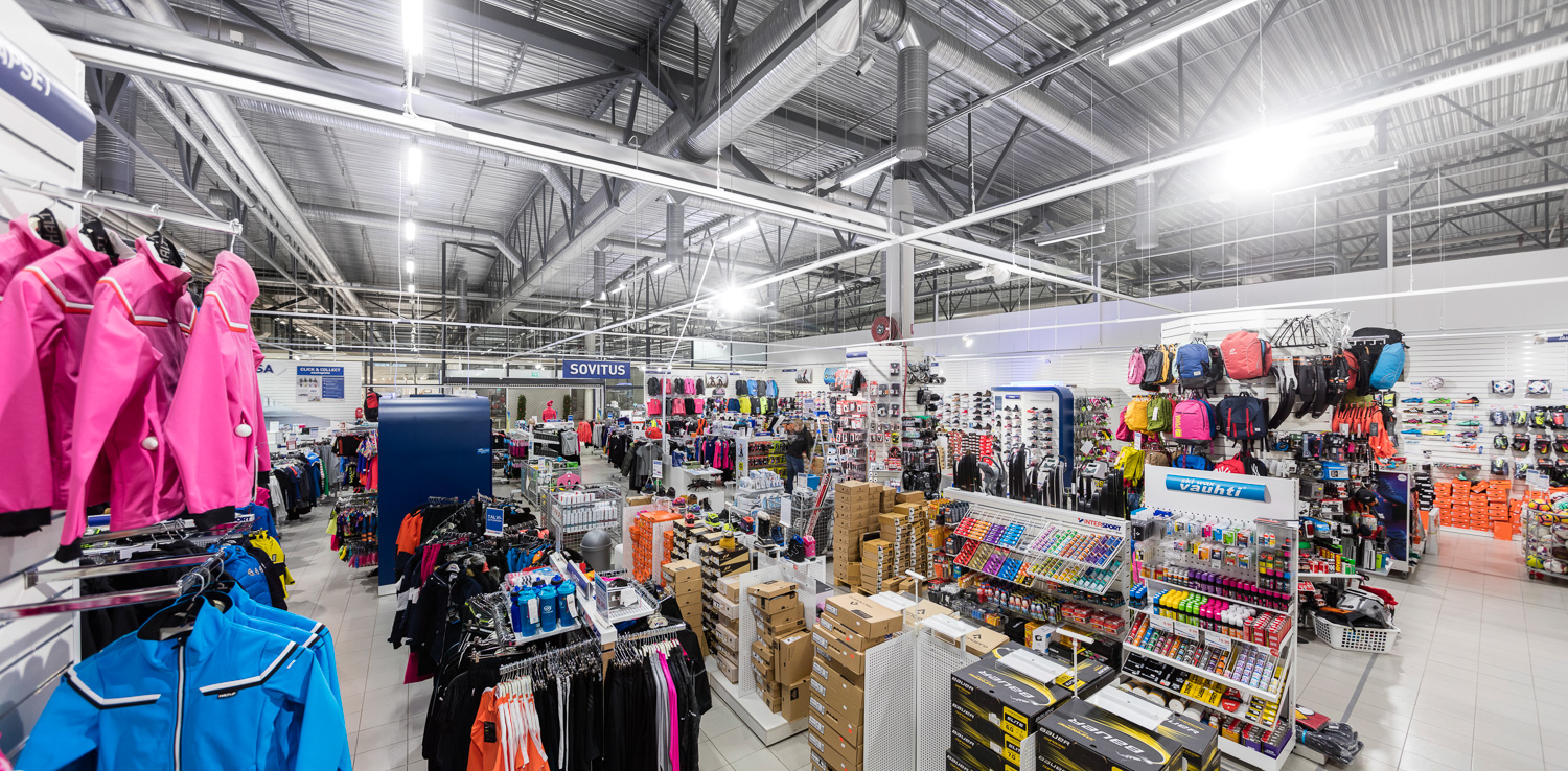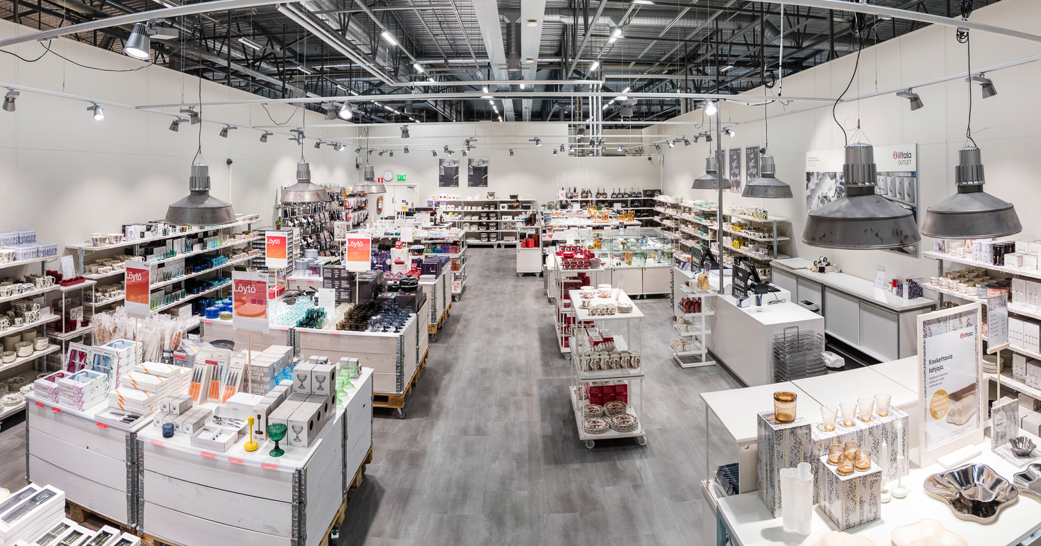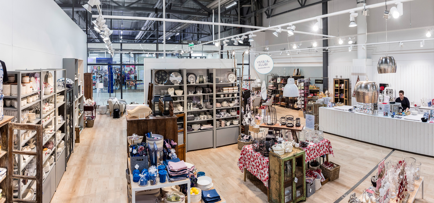 Liikekeskuksen saneeraus 9 500 m². Myymälöiden väliset seinät on toteutettu InLine-elementtiratkaisulla.