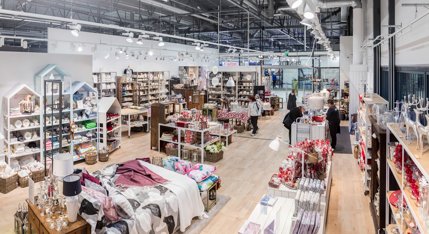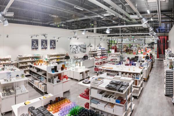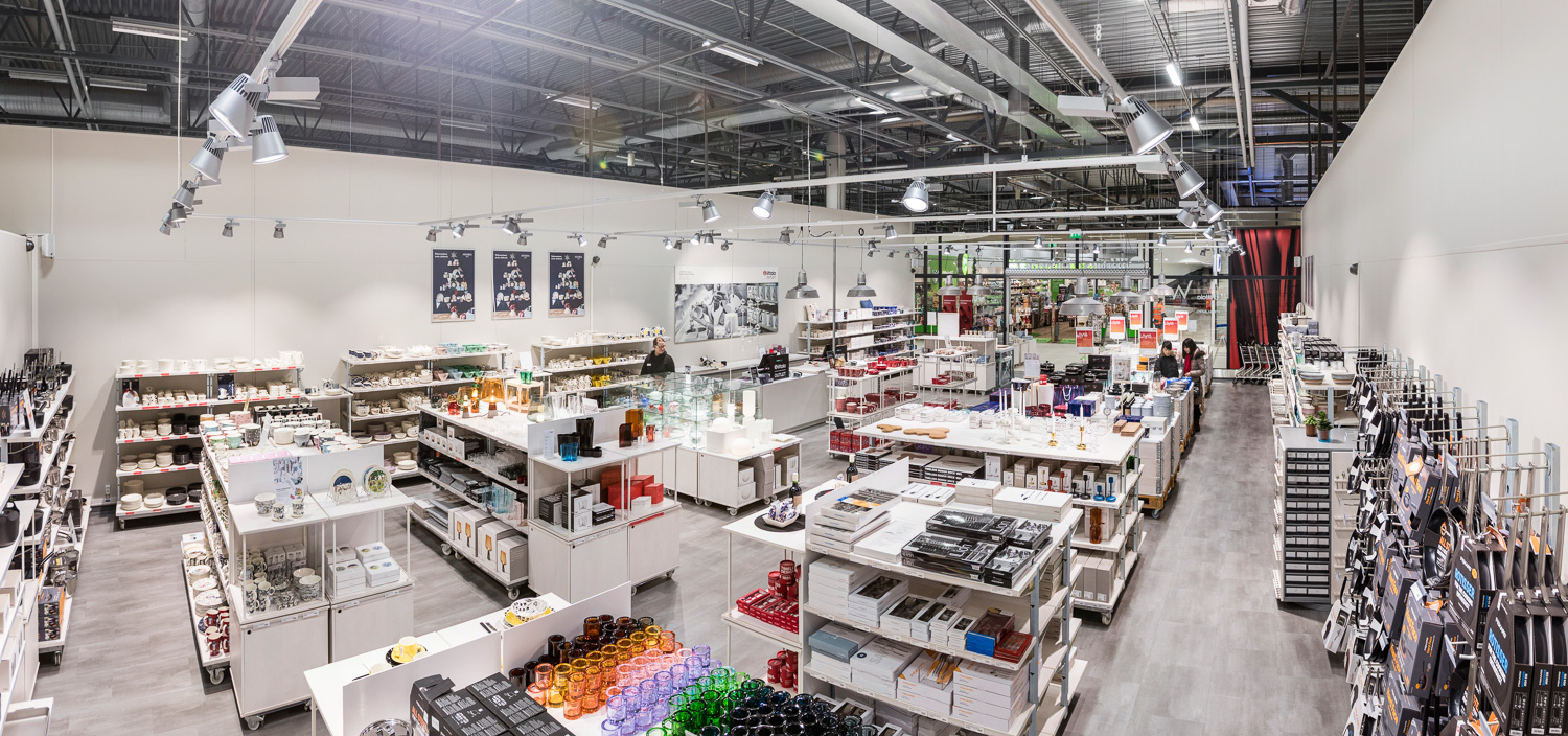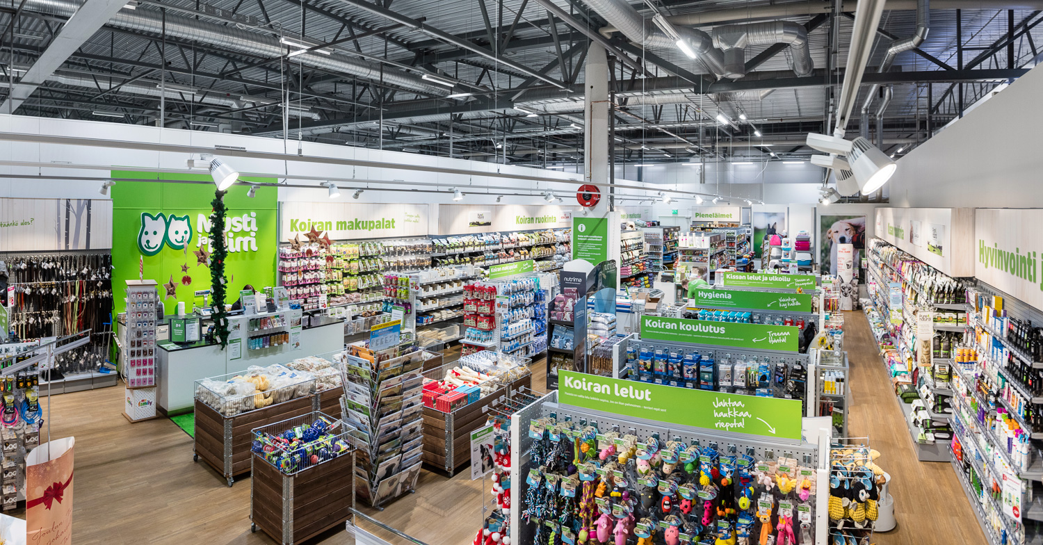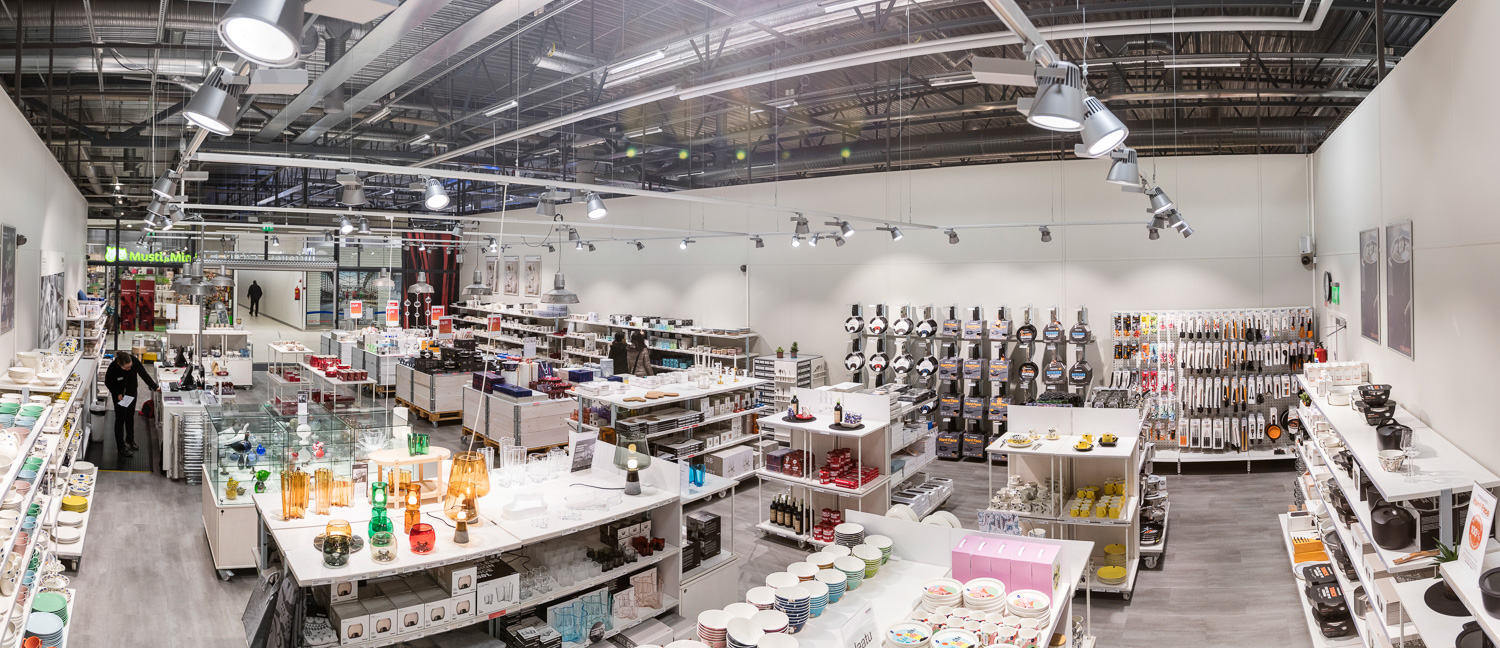 Liikekeskuksen saneeraus 9 500 m². Myymälöiden väliset seinät on toteutettu InLine-elementtiratkaisulla.