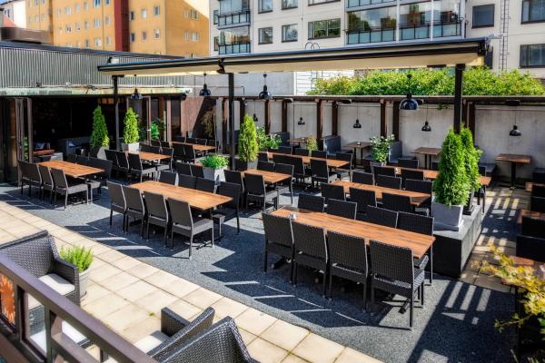 Vanhojen kokoustilojen muutos baarikäyttöön sopiviksi sekä ulkoterassin rakennustyöt.